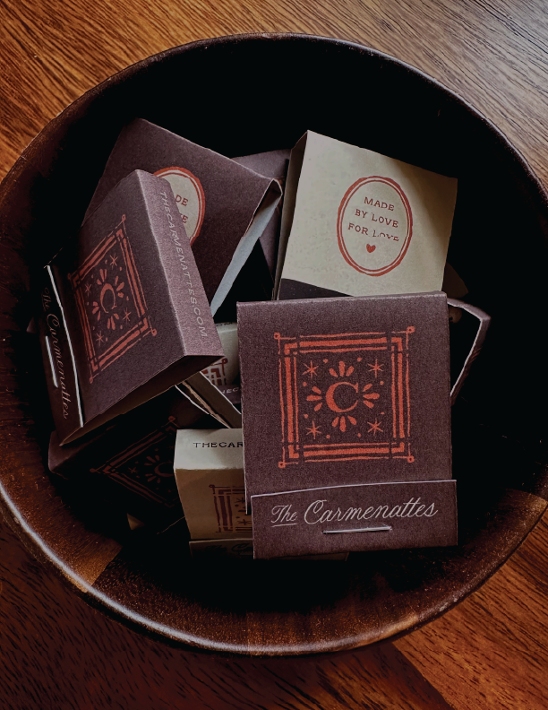 For The Carmenattes, a photography duo capturing weddings, milestones, and portraits, Noodlebird developed a brand identity that balances nostalgia, romance, and charm. A whimsical handwritten script serves as the main wordmark. The mark, inspired by a traditional bookplate, nods to the storytelling at the heart of their work. The peony in its bud stage represents beginnings and new chapters in life – often the moments they're invited to capture.